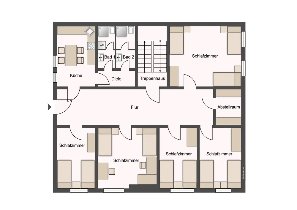 • 5 Schlafzimmer mit je 2 bzw. 3 Betten