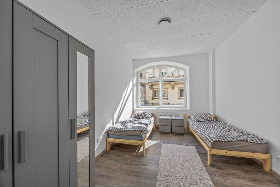 Die ca. 159 m² Wohnfläche verteilen sich auf fünf großzügige Schlafzimmer, die jeweils mit zwei bis drei Betten ausgestattet sind. Vier der Zimmer haben eine Fläche von rund 18 m², das größte Zimmer misst etwa 26 m². Die Wohnung ist vollständig möbliert und wurde mit einem hochwertigen und modernen Bodenbelag ausgestattet. Zwei moderne Bäder wurden 2025 neu eingebaut und sind auf die Bedürfnisse einer kurzzeitigen Vermietung ausgelegt. Eine großzügige Gemeinschaftsküche mit rund 14 m² bietet ausreichend Platz zum gemeinsamen Kochen und Verweilen.