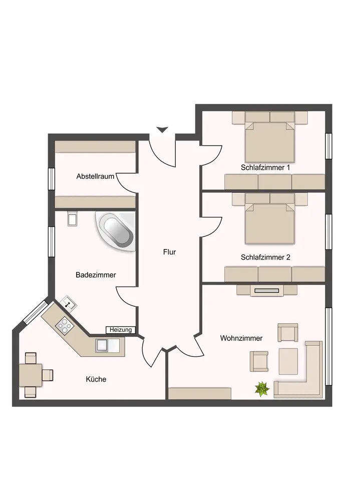 Zwei helle, großzügig geschnittene Schlafzimmer mit je 16 m² bieten viel Platz für Ruhe und Erholung. Das große, einladende Wohnzimmer lädt dazu ein, den Alltagsstress hinter sich zu lassen und entspannte Stunden zu genießen. Zusätzlich steht Ihnen ein großzügiger Abstellraum zur Verfügung, der sich ideal als Home-Office-Bereich nutzen lässt. Das frisch sanierte Badezimmer ist mit einer luxuriösen Eckbadewanne ausgestattet. Die großzügige, 15 m² große Küche ist mit hochwertigen Siemens-Geräten versehen und ermöglicht es Ihnen, tolle Kochabende mit Familie und Freunden zu verbringen.