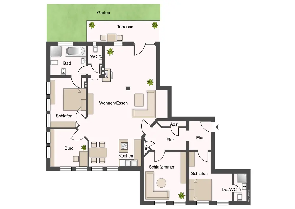 • Terrasse mit eigenem Gartenanteil