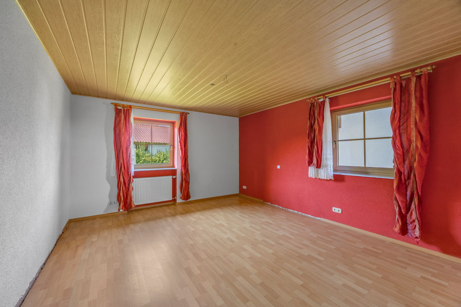 Über das Treppenhaus gelangen Sie in das vor etwa sechs Jahren renovierte Obergeschoss. Auch hier findet sich ein ähnlicher Grundriss wie im Erdgeschoss. Sämtliche Bodenbeläge wurden erneuert und in einem modernen Anthrazitgrau gehalten. Das größte Highlight dieser Etage ist zweifellos der große West-Balkon, der vom Wohn- und Essbereich separat zugänglich ist. Neben der Küche und einem gemütlichen Wohnbereich finden sich auf dieser Etage ein Kinderzimmer, ein Schlafzimmer sowie ein großzügiger Abstellraum mit etwa 8 m² Fläche. Abgerundet wird das Obergeschoss durch ein weiteres Tageslichtbad mit ähnlicher Ausstattung wie im Erdgeschoss.